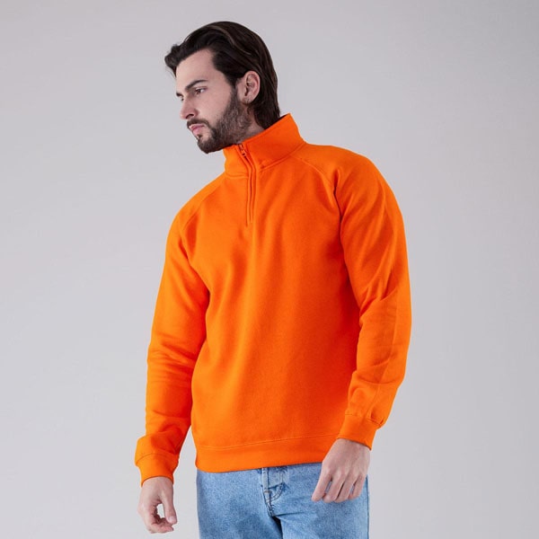 Felpa con maniche raglan, mezza zip coperta, felpata internamente, struttura con cuciture laterali. Etichetta strappabile.