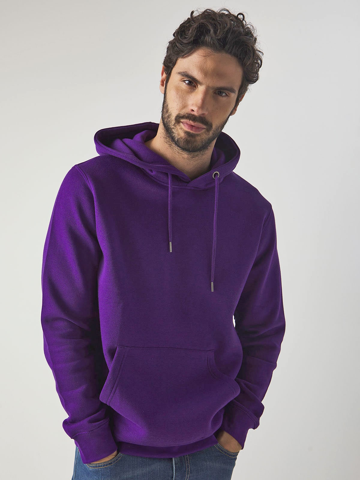 Tessuto PST. Felpa con maniche set-in, unisex a tre strati, felpata internamente, cappuccio a doppio strato, grande tasca a marsupio, struttura con cuciture laterali, fascia in vita e polsini in costina. Etichetta strappabile.