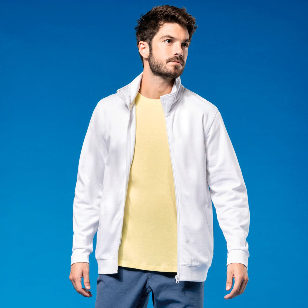 Felpa garzata. Maniche a giro. 2 tasche a filetto sul davanti. Nastrino di rinforzo con motivo spigato sul collo. Fondo manica e fondo capo a costine. Certificato STANDARD 100 by OEKO-TEX® N° CQ 1007⁄7, IFTH.