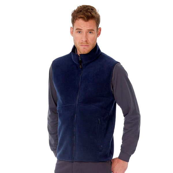 Pile smanicato, 2 tasche, zip intera, struttura con cuciture laterali.
