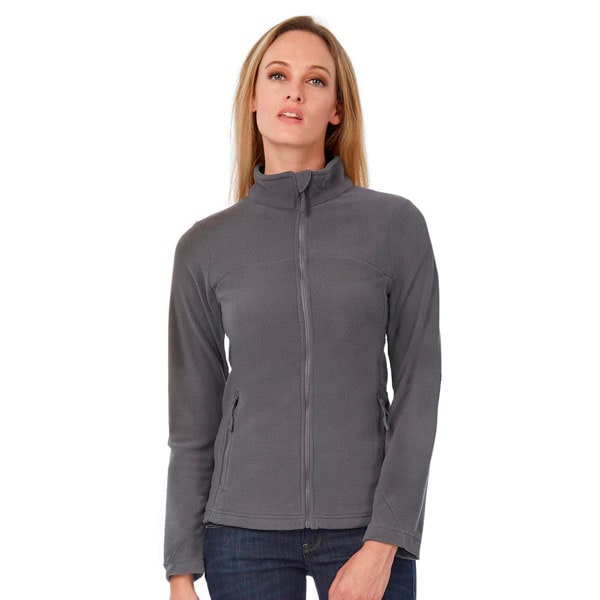 Pile dal tessuto sottile, compatto, maniche set-in, leggermente sfiancata, zip intera, 2 tasche laterali con zip. Struttura con cuciture laterali.