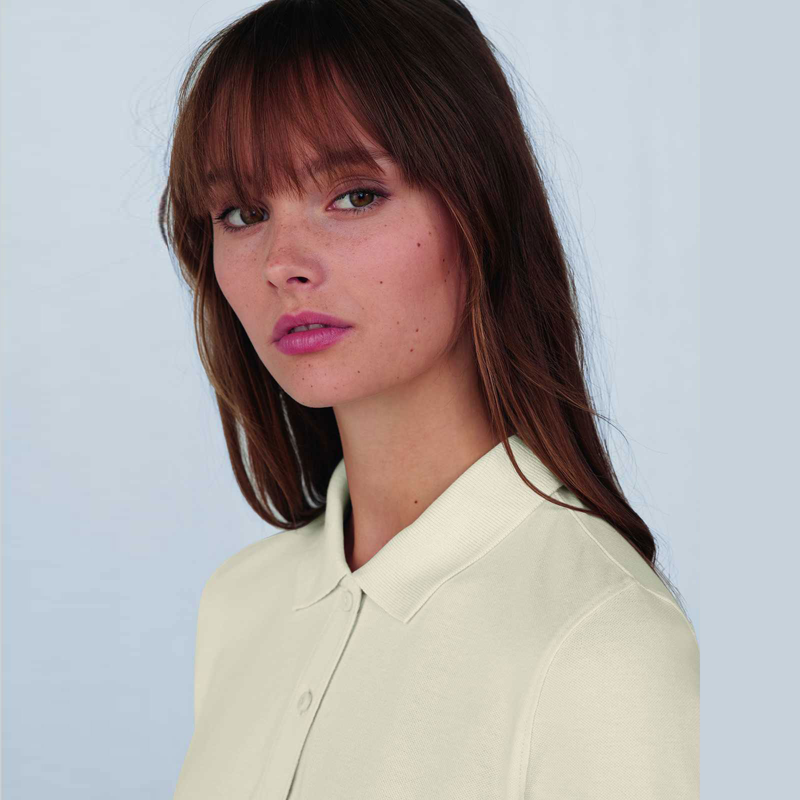Polo da donna classica, moderna e facile da indossare, realizzata in tessuto di alta qualità, 2 bottoni tono su tono, polsini a costine 1x1. Questo piquè fine ad alta densità offre una sensazione morbida al tatto e un'eccezionale stampabilità